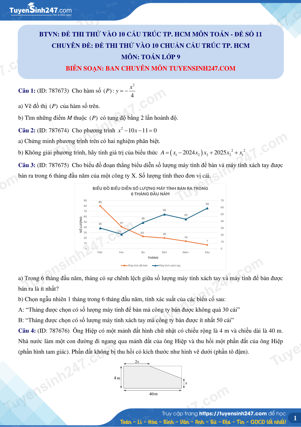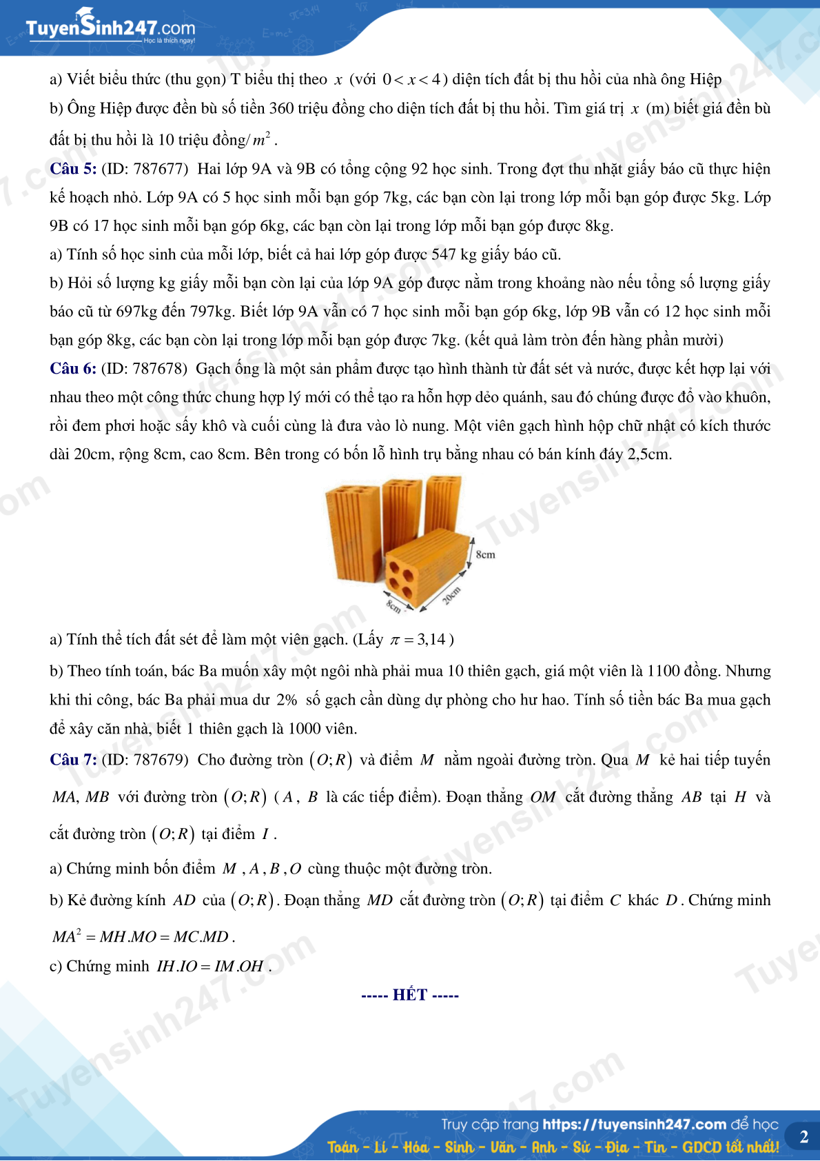 Đề thi được biên soạn bởi Ban chuyên môn của Tuyensinh247 và Loigiaihay, được cập nhật liên tục, đảm bảo đủ số lượng trước ngày 17/5/2025. Đề thi cam kết đầy đủ phương pháp, lời giải chi tiết.